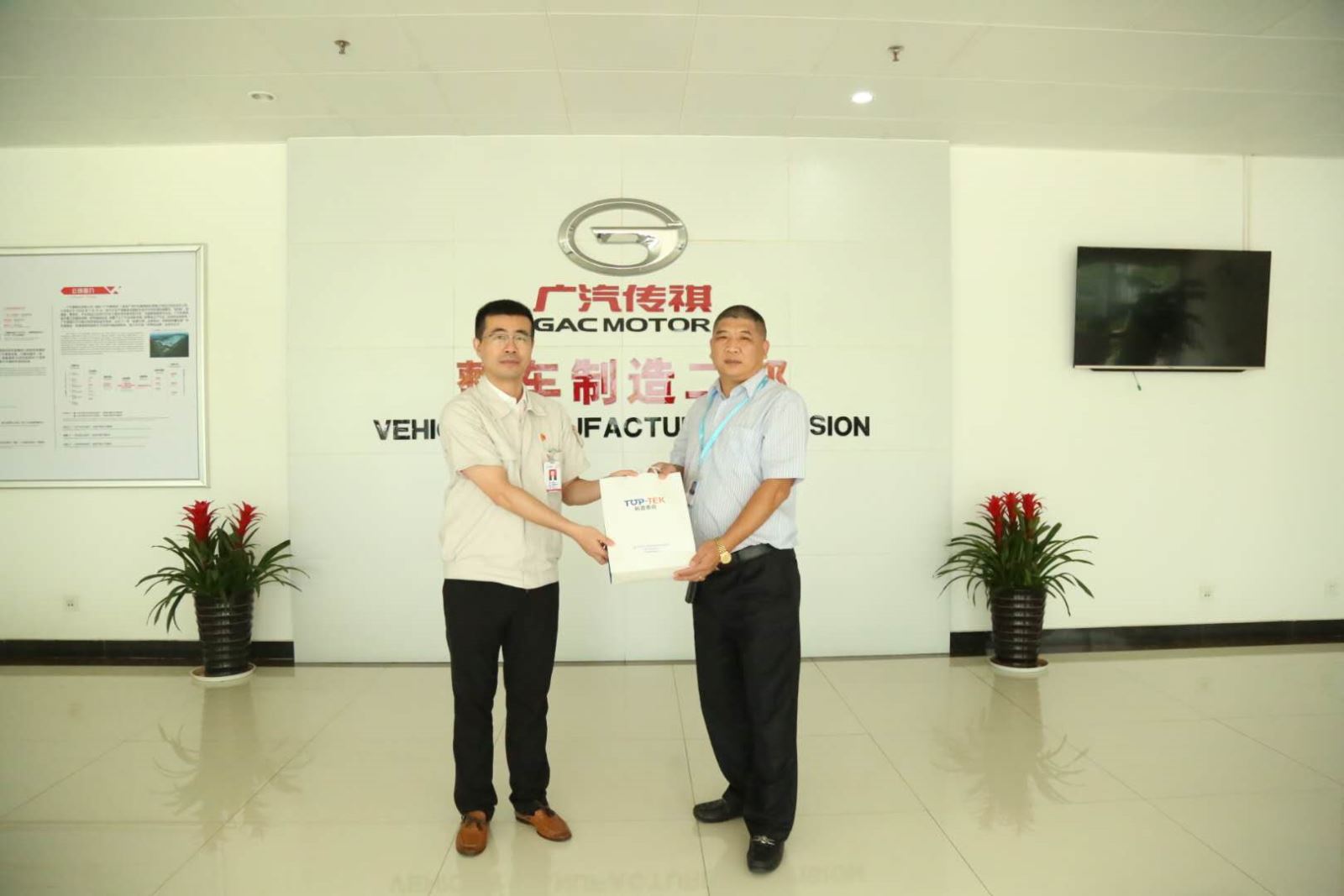 参观完毕,一行人来到了制造二部制管中心会议室。郭部长首先代表广汽乘用车公司对我司的到访表示欢迎,曾总助理也代表拓普泰克对广汽乘用车公司给予的高规格接待表示感谢。随后,双方如拉家常一般介绍了各自公司的发展概况。