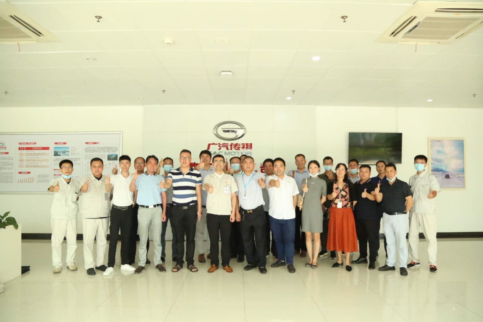 2020年8月22日上午,深圳市拓普泰克电子有限公司中高层管理干部一行20人在总经理助理曾永胜带领下,到访广汽乘用车公司,与整车制造二部郭劲松部长等生管干部就“广汽生产方式理论精髓与品质管控实践”进行了深入、友好的交流。