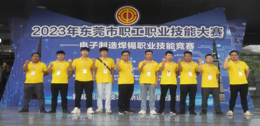 2023年8月25日,公司组织研发部、生产部、测试部焊锡技术人员组成三队共9人参加了东莞市工会举办的“匠心筑梦,奋斗有我”为主题的“电子制造焊锡职业技能竞赛”。